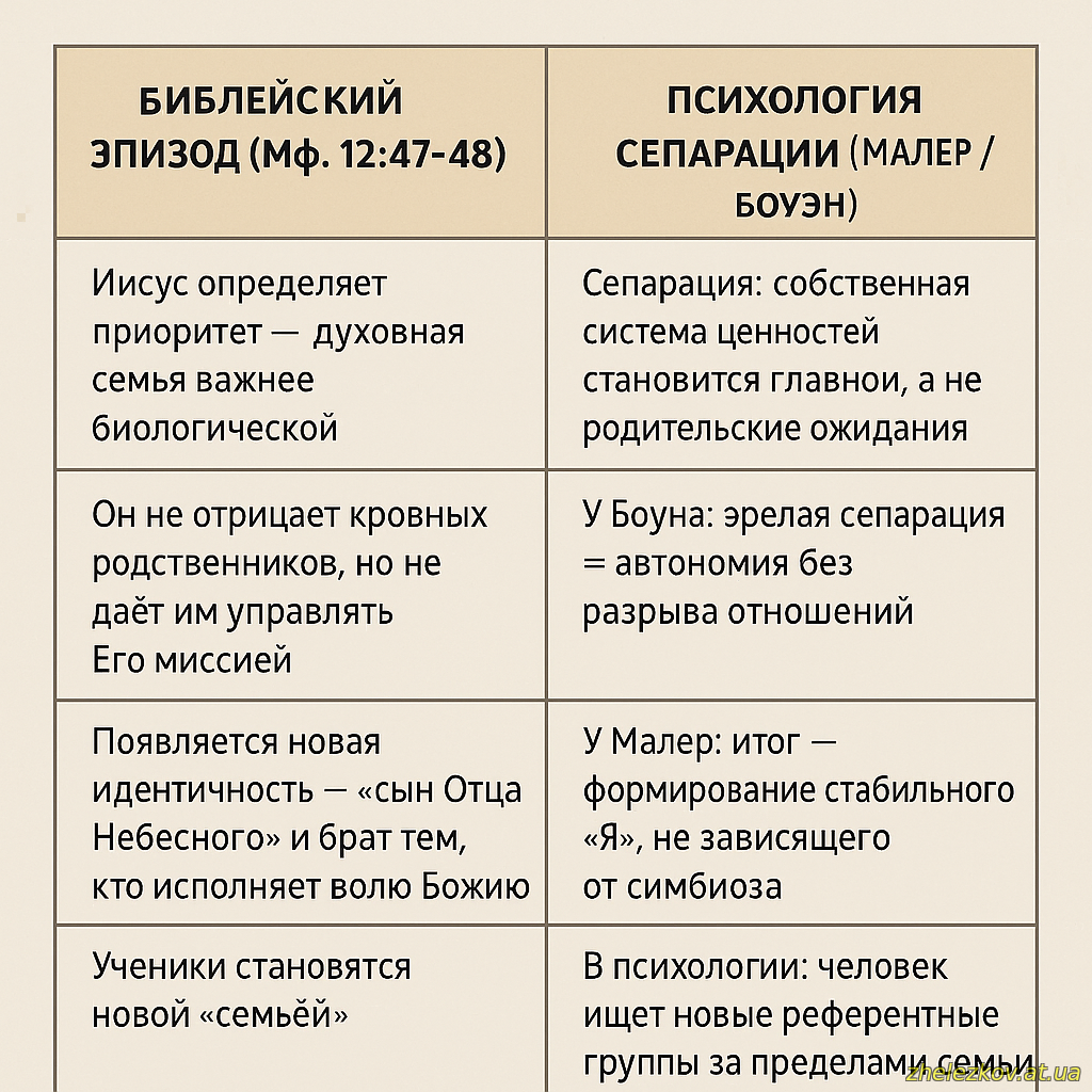 ⚡ Писание и Психология сходятся в том, что подлинная зрелость не означает разрыв или отрицание семьи, а умение занимать своё место в мире, следуя внутреннему (в библейском смысле — Божественному) призванию.